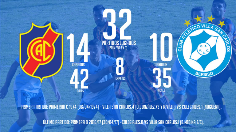 Este será el enfrentamiento número 33 entre Villa San Carlos y Colegiales. Los de Berisso ganaron en 10 ocasiones, mientras que los de Munro lo hicieron en 14 oportunidades, empates fueron 8.