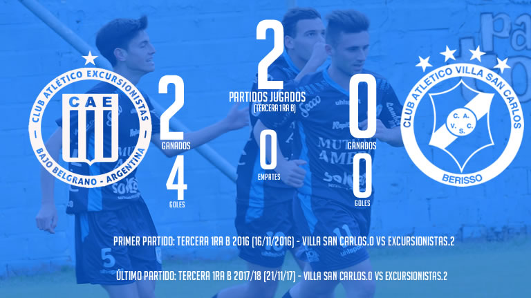 Desde que se volvió a disputar el certamen de reserva en el año 2015, Villa San Carlos y Excursionistas se han enfrentado en dos ocasiones, ambas en Berisso y con triunfos para los del Bajo Belgrano.