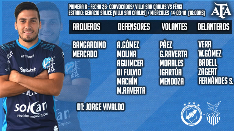Villa San Carlos estará recibiendo esta tarde, a partir de las 16:00hs a su par de Fénix por el encuentro correspondiente a la vigésimo sexta fecha del Torneo de la Primera B. Los dirigidos por Jorge Vivaldo intentará alcanzar la línea de 30 unidades en el certamen.