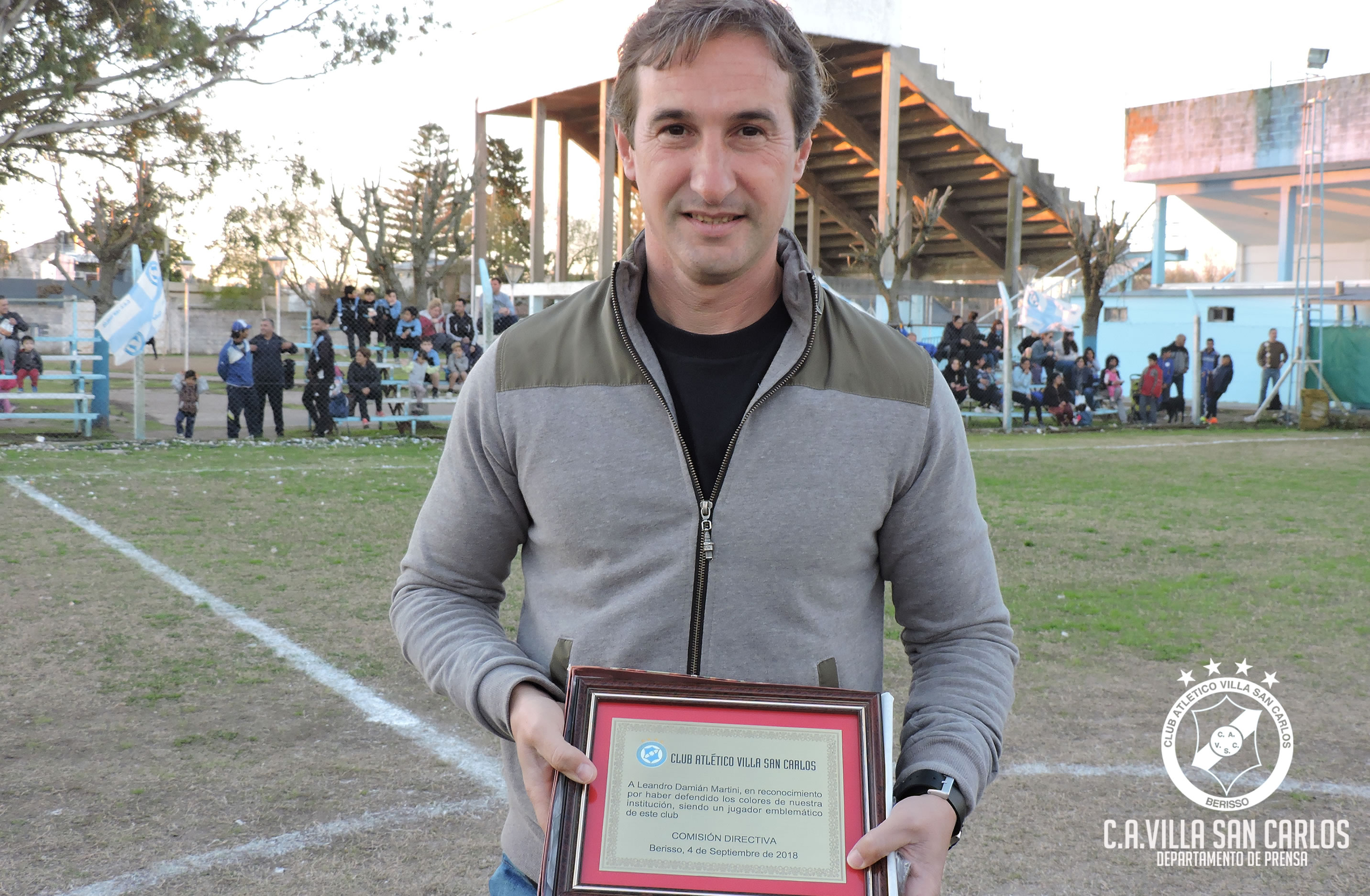 El día Miércoles (5/9) se hizo presente en el predio de Villa San Carlos el ídolo “Villero” Leandro Martini quien tras recibir una plaqueta a manos de los integrantes de a Subcomisión de Fútbol Infantil y miembros de la Comisión Directiva dijo unas palabras tanto a los jugadores como al público presente. Ese día tuvieron acción las categorías 2008 y 2009 de Villa San Carlos que se midieron ante Villa Zula y la 2011 y 2012 donde me midieron Estrella de Berisso ante AFI 19.