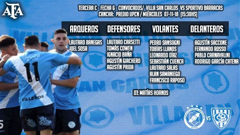 Este miércoles la Tercera División de Villa San Carlos estará haciendo una nueva presentación, por la sexta fecha del Torneo de la Tercera C estará recibiendo en el Camping de UPCN a su par de Sportivo Barracas a las 15:30hs.