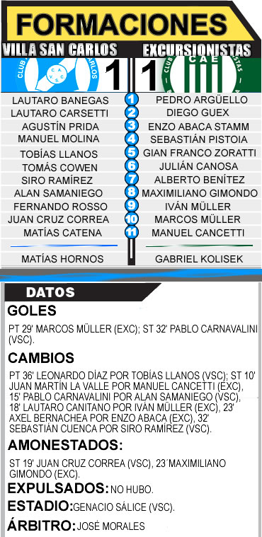 La Tercera División de Villa San Carlos recibió en la tarde de miércoles a Excursionistas por la octava fecha del Torneo de Tercera C. La visita se puso en ventaja en Berisso, pero en el banco estaría el empate villero. Un empate con un sabor agridulce, ahora a pensar en lo que viene.