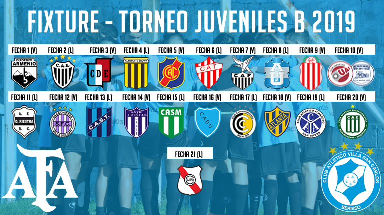 Las divisiones inferiores de Villa San Carlos saltarán a la cancha este sábado cuando debuten ante Deportivo Armenio, abriendo la primera fecha del Torneo de Juveniles B. La acción dará comienzo a las 10:00hs con el inicio de la 4ta y 7ma división, luego a las 12:00hs llegará el turno para la 5ta y 8va, y cierran la jornada la 6ta (13:50hs) y 9na (14:00hs).