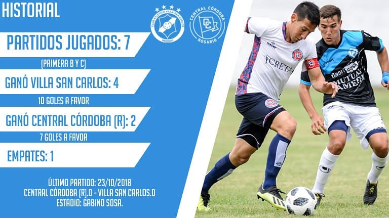 Villa San Carlos y Central Córdoba han jugado en siete ocasiones, el villero se impuso en cuatro ocasiones, mientras que los de Rosario lo hicieron en dos oportunidades. Han igualado en una ocasión.