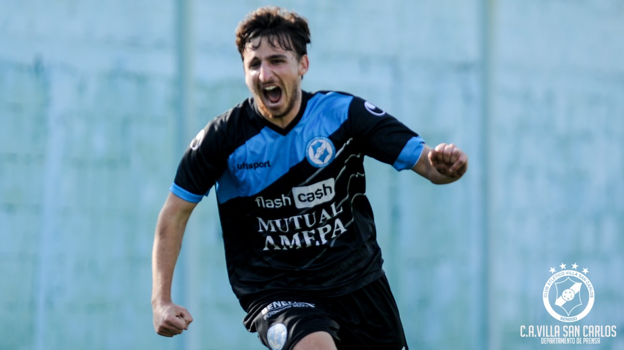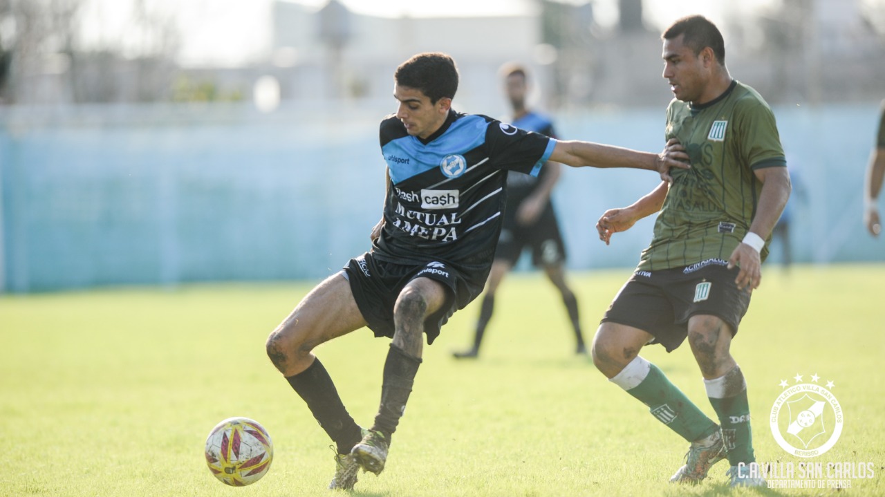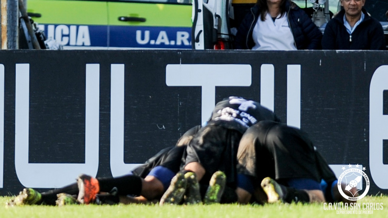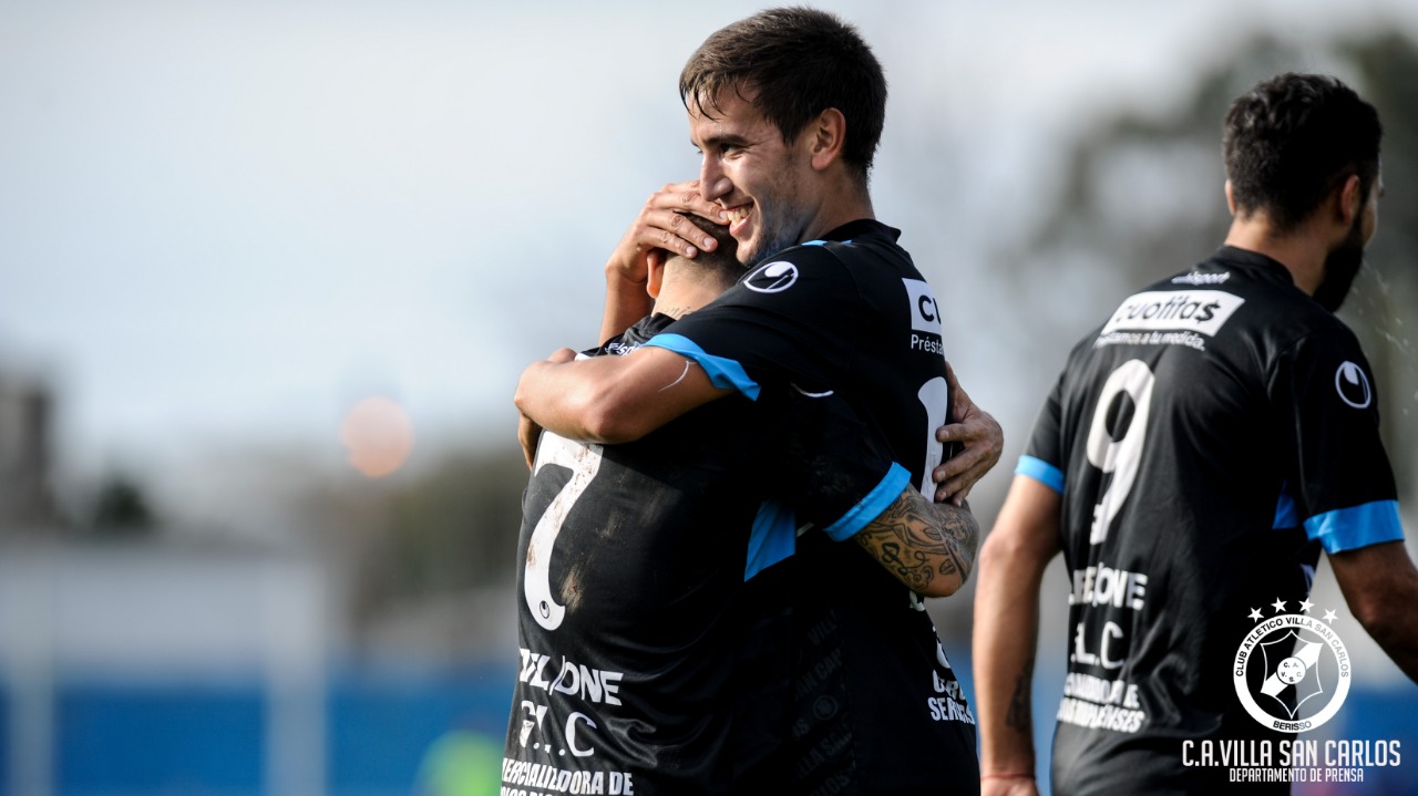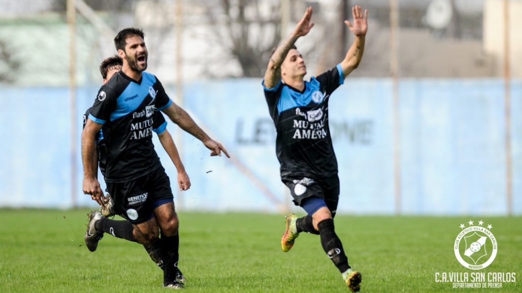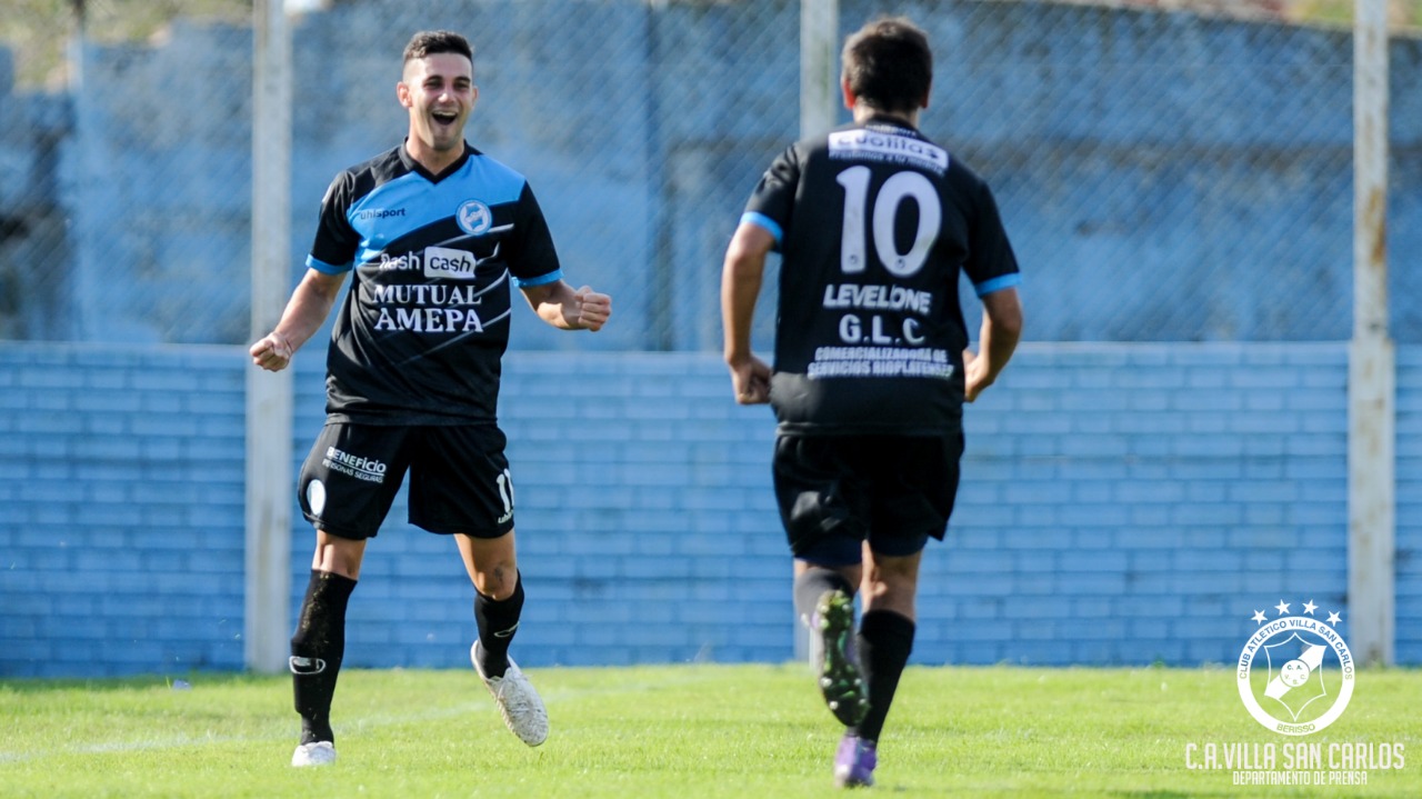 No pasó mucho tiempo desde el inicio del encuentro para que se abra el marcador, ya que a los 13 minutos de la primera parte Villa San Carlos llegó al gol luego que Matías Grasso enviara un centro desde el costado izquierdo al corazón del área, un despeje defectuoso dejó el esférico en la puerta del área chica, allí apareció Alejandro Lugones para rematar de primera clavando la pelota en el ángulo superior derecho, poniendo así el 1-0 a favor del “Celeste”.