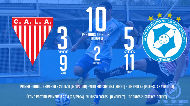 Villa San Carlos y Los Andes se enfrentaron solamente en diez ocasiones, todas ellas en Torneos de Primera B. El “villero” se quedó con cinco triunfos, contando con 11 goles a favor, mientras que el “milrayitas” lo hizo en tres oportunidades con nueve tantos. igualaron solo en dos enfrentamientos.