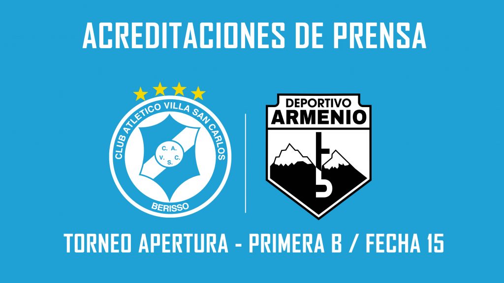 A Continuación , el Departamento de Prensa del Club Atlético Villa San Carlos dará a conocer a aquellos periodistas y medios acreditados para el encuentro ante Deportivo Armenio, correspondiente a la décimo quinta fecha del Torneo Apertura 2019 de la Primera B.