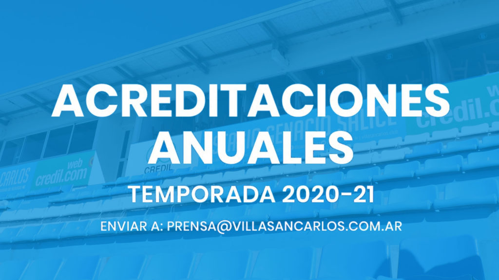 El Departamento de Prensa del Club Atlético Villa San Carlos les informa a todos los medios de comunicación que se encuentra abierto el periodo para solicitar la credencial anual para la temporada 2020-2021.