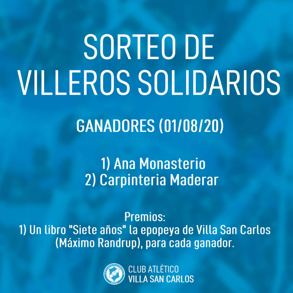 Como siempre, desde el club premiamos a las personas que acercaron su donación con algún producto villero. A continuación los ganadores de la jornada de hoy (01/08/20).