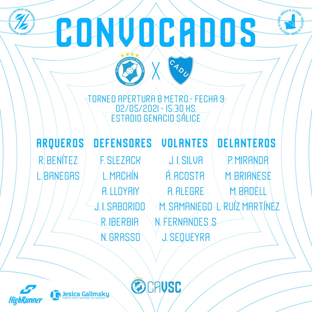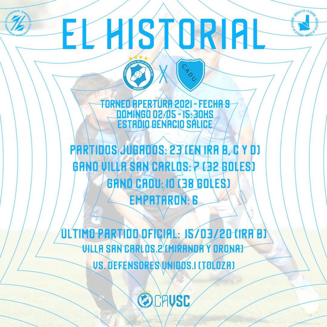 Este domingo, desde las 15.30hs, Villa San Carlos recibirá a Defensores Unidos de Zárate en su casa, el histórico Genacio Sálice. El duelo será por la novena fecha del Torneo Apertura 2021 de la Primera B, contará con el arbitraje de Javier Delbarba y la televisación de TyC Sports Play.