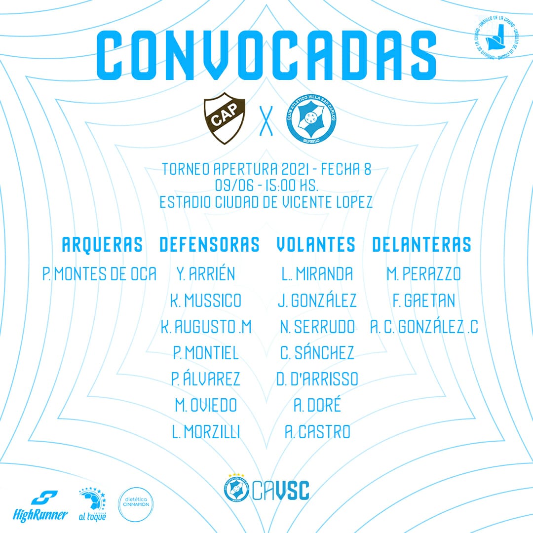 Para esta nueva jornada, Juan Cruz Vitale optó por citar a las siguientes futbolistas:
