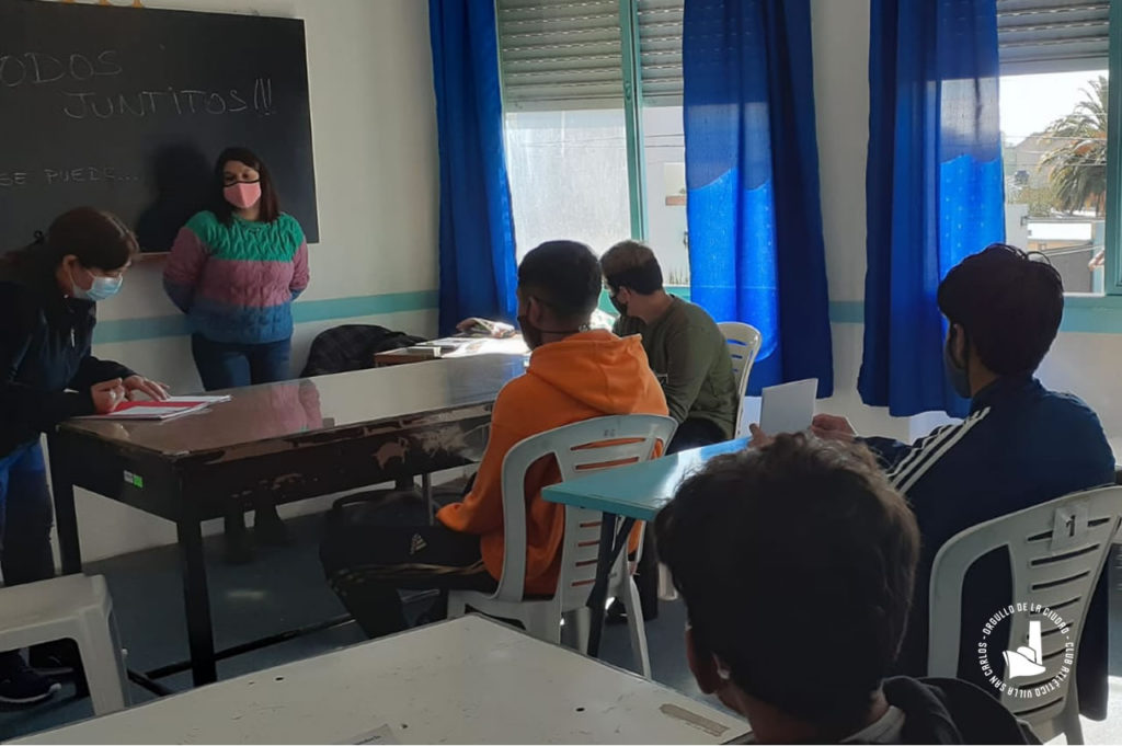 El curso de 4to 3ra (turno tarde) de la Secundaría 8, perteneciente a la Escuela N° 5 de Berisso, se desarrolla desde este año en la sede producto de las promociones contempladas en el Plan Jurisdiccional asegurando la continuidad pedagógica del nivel secundario.