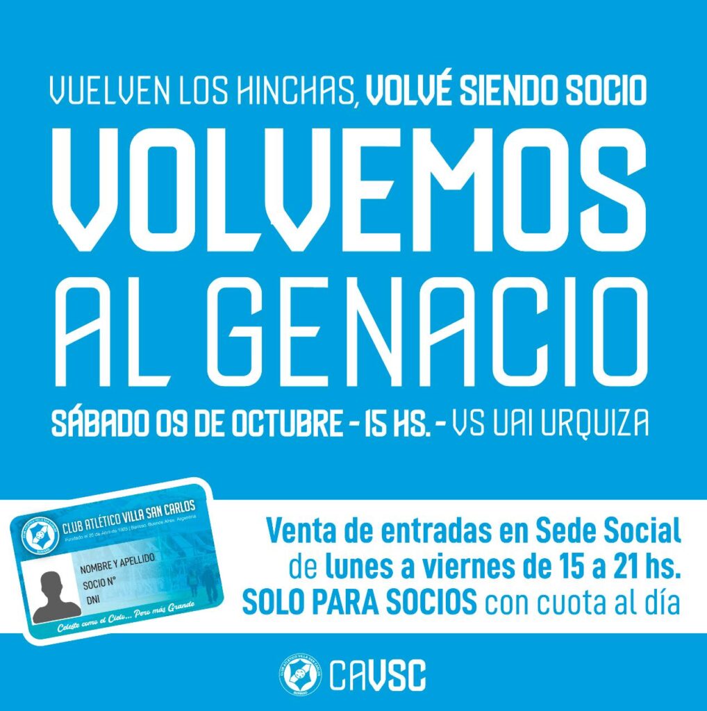 El próximo sábado recibimos a la UAI Urquiza y quedará marcada la vuelta del público al Genacio Salice. Te detallamos información importante para que tengas en cuenta y puedas sacar tu bono.