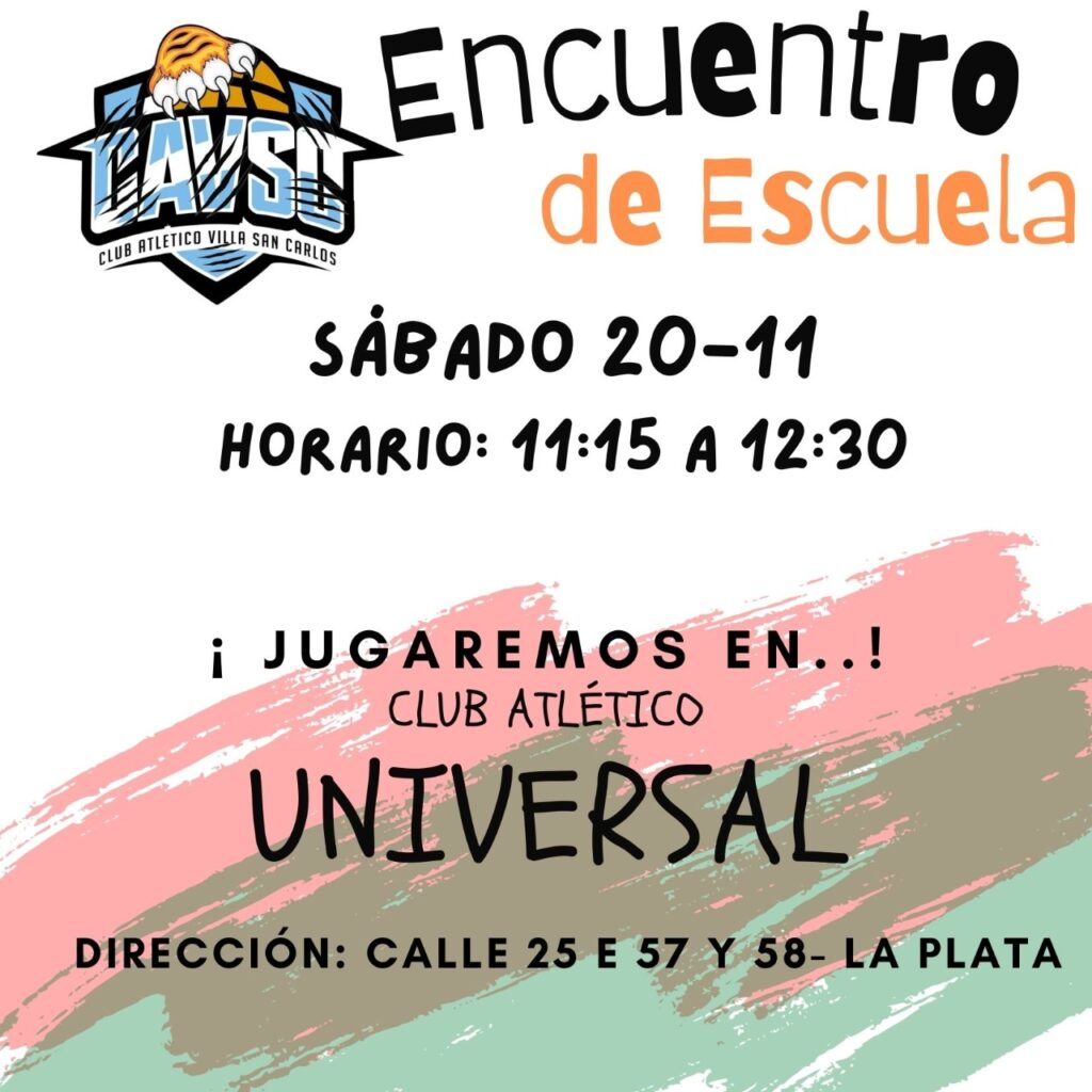 El sábado en el Club Universal, ubicado en 25 entre 57 y 58 se realizará un nuevo encuentro de escuelita entre el local, Villa San Carlos y Gimnasia y Esgrima La Plata. Se espera una gran concurrencia de la familia “villera”.