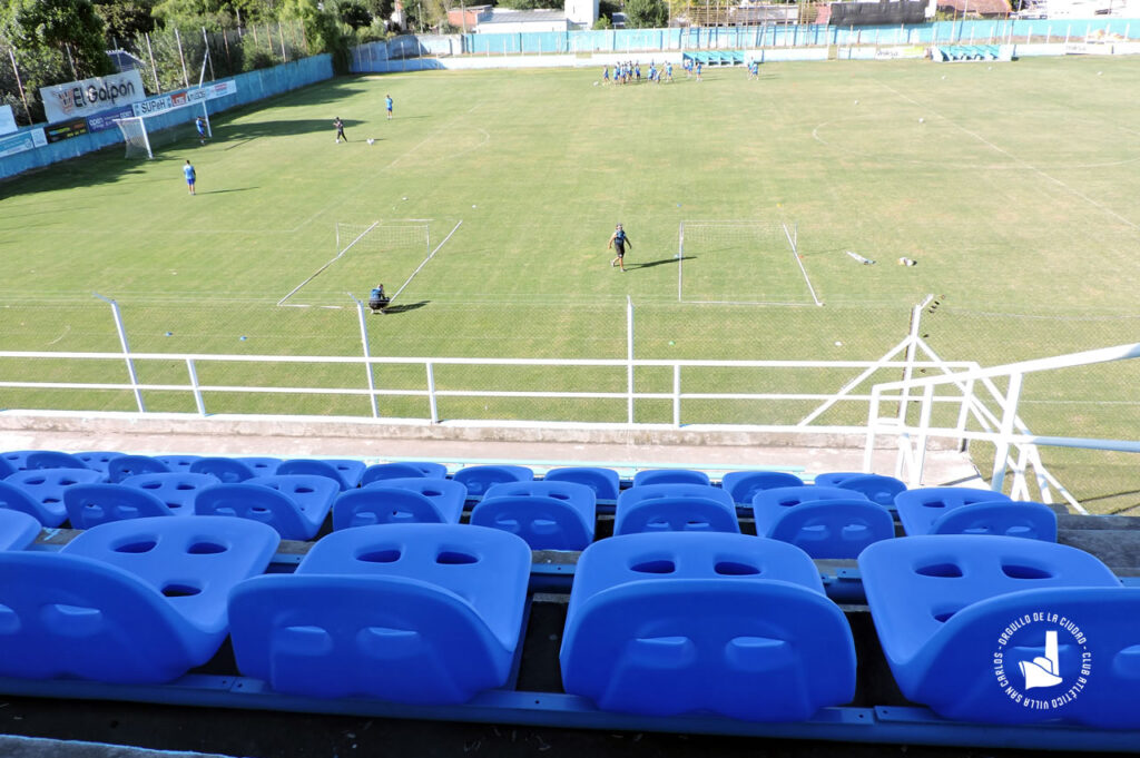 El Club Atlético Villa San Carlos informa que se están colocando 300 butacas en reemplazo de las otras que estaban deterioradas y rotas.