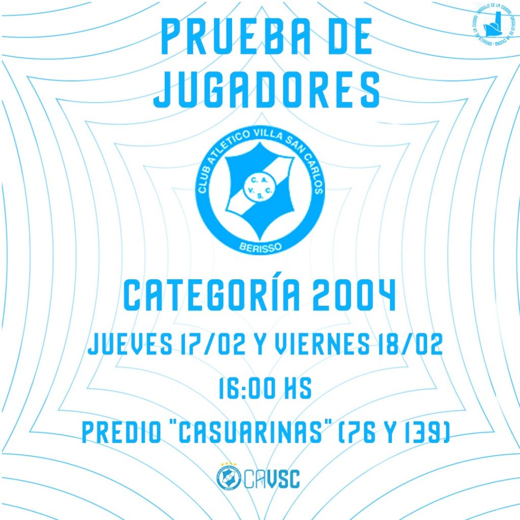 El jueves 17 y viernes 18 de Febrero a las 16hs , la coordinación de juveniles realizará las pruebas para los nacidos en el año 2004. La misma se desarrollará en el Predio “Las Casuarinas” ubicado en 76 y 139 de Los Hornos.