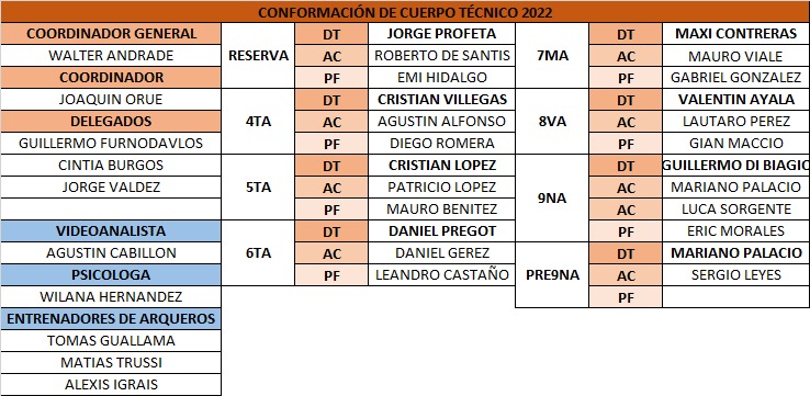 A continuación, los cuerpo técnico que trabajaran a los largo del 2022: