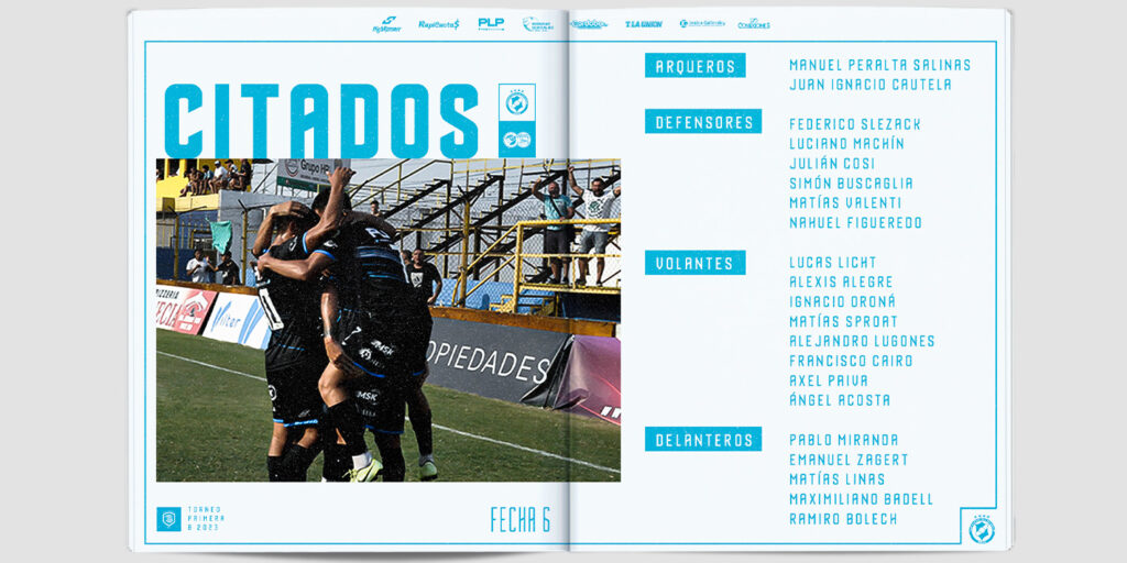 Para esta jornada Leandro Martini podrá disponer de Alejandro Lugones, quien recibió una fecha de suspensión tras su expulsión en la fecha cuatro frente a Talleres de Remedios de Escalada y cumplió el último viernes ante Dock Sud. El delantero intengrará nuevamente la nómina de convocados. En esta ocasión el entrenador decidió citar 21 jugadores, sumándose Ramiro Bolech y Nahuel Figueredo a la lista.